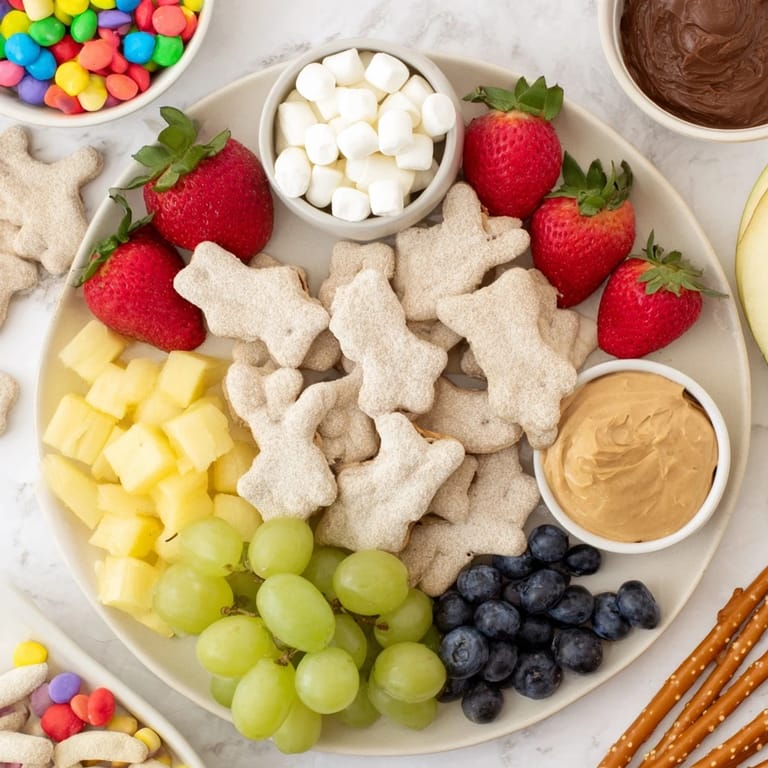 Save to Pinterest A whimsical, colorful party platter featuring animal crackers, fresh fruit, and playful dips—perfect for delighting kids at any celebration.