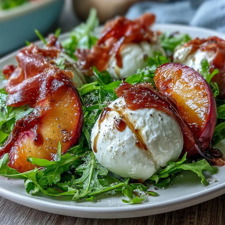 Save to Pinterest The very first summer I tasted burrata, it was at a picnic sprawled out on my little city balcony, sunlight catching in the oil like gold. There’s something about the gentle tug of creamy cheese and the scent of ripe peaches that always sings of heat and lazy afternoons. My neighbor interrupted with a laugh when the prosciutto stuck stubbornly to my fingers: messy food is good food, she insisted. This salad kind of came together without a plan, just me layering what was freshest from the market. I suppose the best summer dishes are the ones that invite you to play more than follow rules.