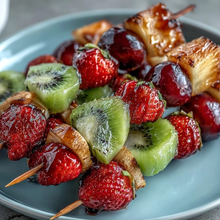 Save to Pinterest My daughter came home from school one afternoon asking why her lunchbox always looked so boring compared to her friend Maya's colorful bento boxes. That question sparked something—I realized packing lunch didn't have to feel like a chore, but an opportunity to make her excited about what was inside. Within a week, we'd created this vibrant fruit skewer situation, and suddenly she was the one showing off her lunch to friends. Now it's become our Thursday ritual, where she helps thread the fruit and we make little edible art together.