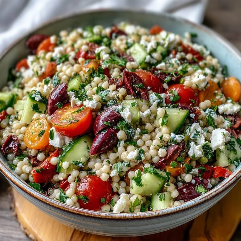 Save to Pinterest One sticky summer afternoon, I opened the fridge and found half a cucumber, some tired cherry tomatoes, and a tub of feta that needed using. I had cooked pearl couscous the night before and completely forgotten about it. Instead of letting everything go to waste, I chopped, tossed, and drizzled whatever I had into a bowl. That accidental lunch turned into something I now make on purpose, especially when the kitchen feels too hot for anything complicated.