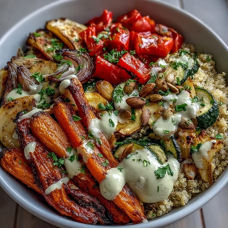 Save to Pinterest Last summer, a friend handed me a steaming bowl of roasted vegetables over quinoa and I was immediately struck by how the colors seemed to glow against the white ceramic. The tahini sauce pooled at the bottom like liquid gold, and when I took that first bite, something clicked—this wasn't health food pretending to taste good, it was genuinely delicious and happened to nourish you completely. I went home determined to recreate it, and after a few experiments with timing and seasoning, I realized the magic was in letting the vegetables char just enough while keeping everything else simple and honest.
