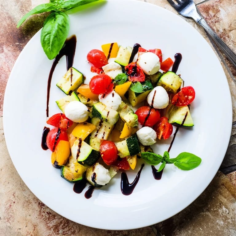 Save to Pinterest My neighbor handed me a box of bell peppers from her garden, way more than I could use in a week. I stood in my kitchen staring at them, wondering what wouldn't feel like just another stir-fry. That's when I remembered a restaurant salad I'd had months before, something with roasted vegetables and mozzarella that tasted like summer condensed into a bowl. I pulled out a baking sheet and started chopping, letting the oven do the heavy lifting while I cleaned up the counters.