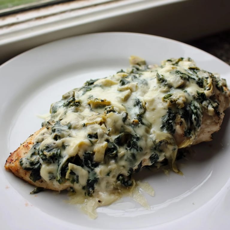 Save to Pinterest The smell of spinach and artichoke dip always pulls me into the kitchen at parties, so I wondered what would happen if I turned that creamy, tangy goodness into an actual dinner. One Tuesday evening, I had chicken thawing and a container of Greek yogurt that needed using, so I started experimenting with the classic dip flavors as a topping instead. My husband actually paused between bites and asked if I was planning to open a restaurant, which is basically the highest compliment he can give.