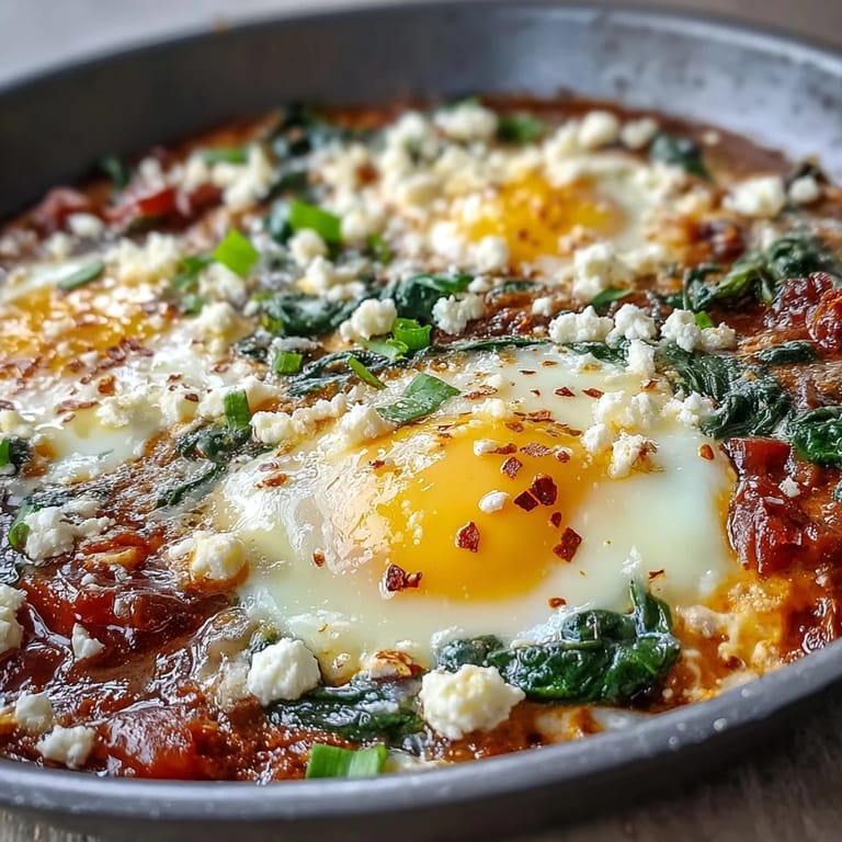 Save to Pinterest The sizzle of onions hitting hot olive oil always sets the tone for my mornings, but the first time I made spinach and feta shakshuka, it was a spontaneous twist on a weary Tuesday. I remember pausing to inhale the bright, sweet aroma as cumin and smoked paprika mingled in the kitchen. Let's just say my plans to eat quietly at the kitchen counter faded fast since the colors pulled in a very curious roommate. Breakfast morphed into lively conversation, with eggs nestled in bubbling tomato sauce holding court. Since then, this one-pan wonder has become my go-to for days that need a little extra vibrancy.