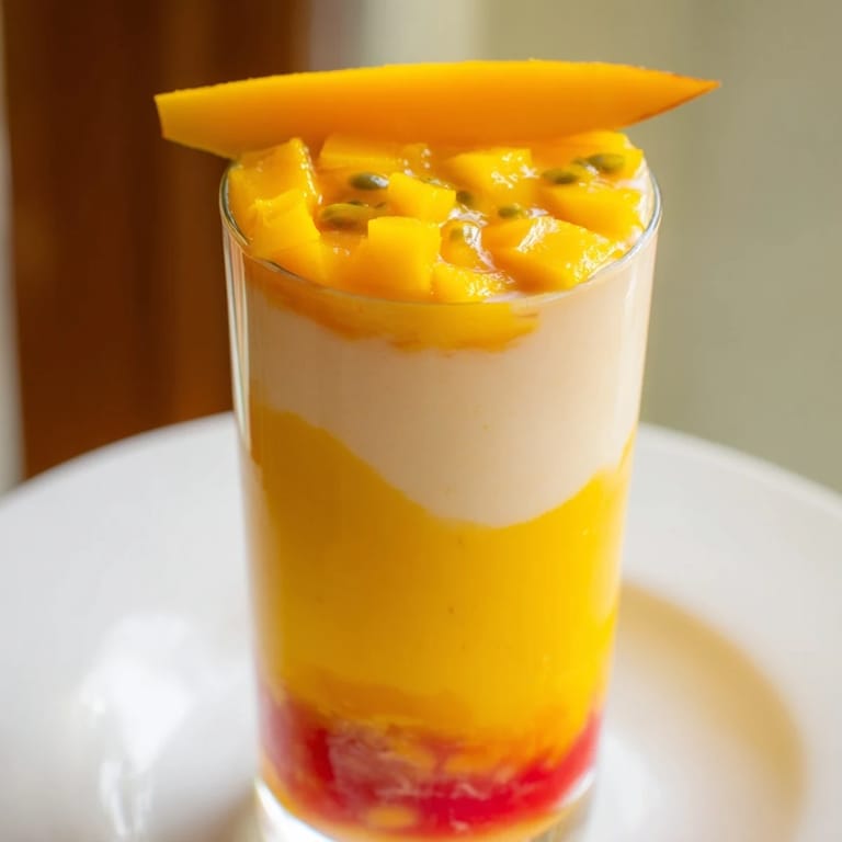 - Blend the passion fruit pulp with yogurt and honey until creamy, then carefully pour or spoon it over the mango layer. If you pour slowly and let it meet the spoon held just above the surface, the line between layers stays clean and defined.