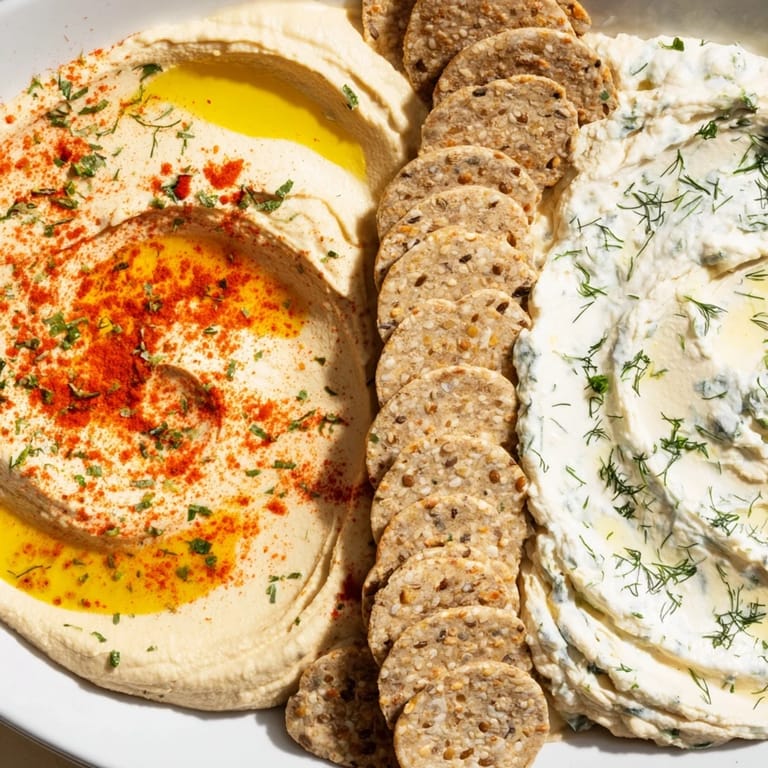 Save to Pinterest A fun and simple party platter featuring two delicious dips served side by side, perfectly separated by a line of crisp crackers for easy scooping and sharing.