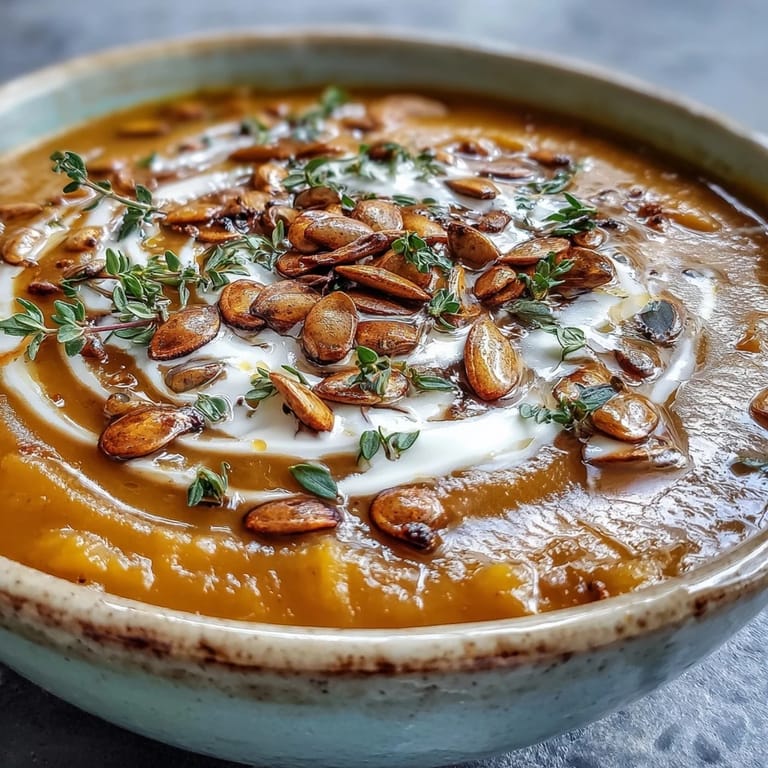 Save to Pinterest There's something about October that makes me crave butternut squash soup—not because of some grand tradition, but because I once burned an entire batch while distracted by a phone call, and the charred bits that stuck to the pan actually smelled incredible. That mistake led me to deliberately roast the vegetables longer, letting them caramelize until they turned a deep amber color, and suddenly the soup tasted like autumn itself. Now I make it whenever I need something that feels both fancy and utterly simple, something I can put together on a weeknight and still feel proud serving to friends.